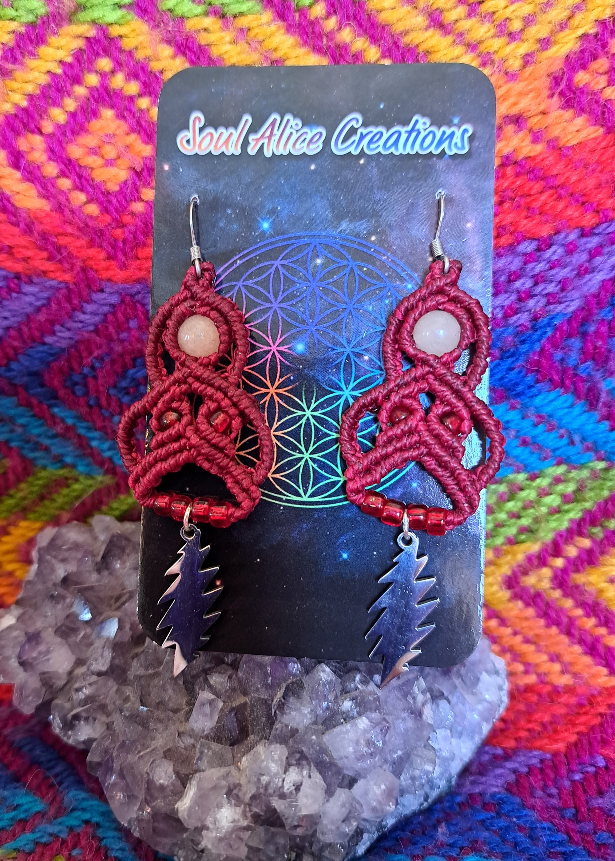 Made with stainless steel hooks, high quality linhasita cord, glass seed beads and stone or crystal round.