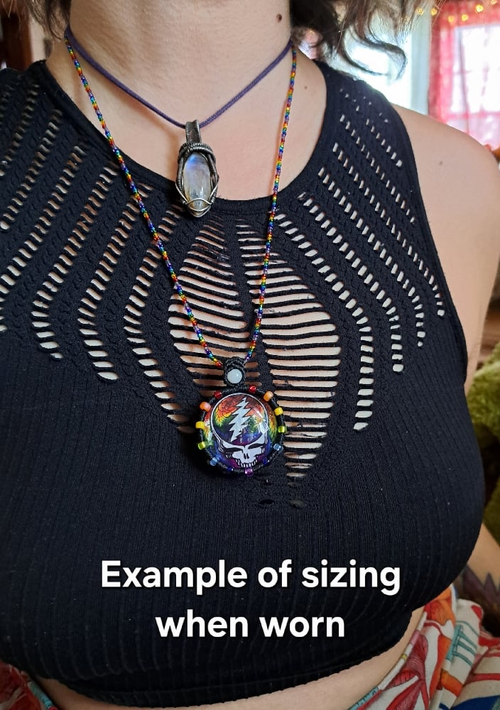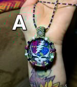 Stealie design on the cabochons are originally a handpainted patch by Lauren Rainy Vice.
